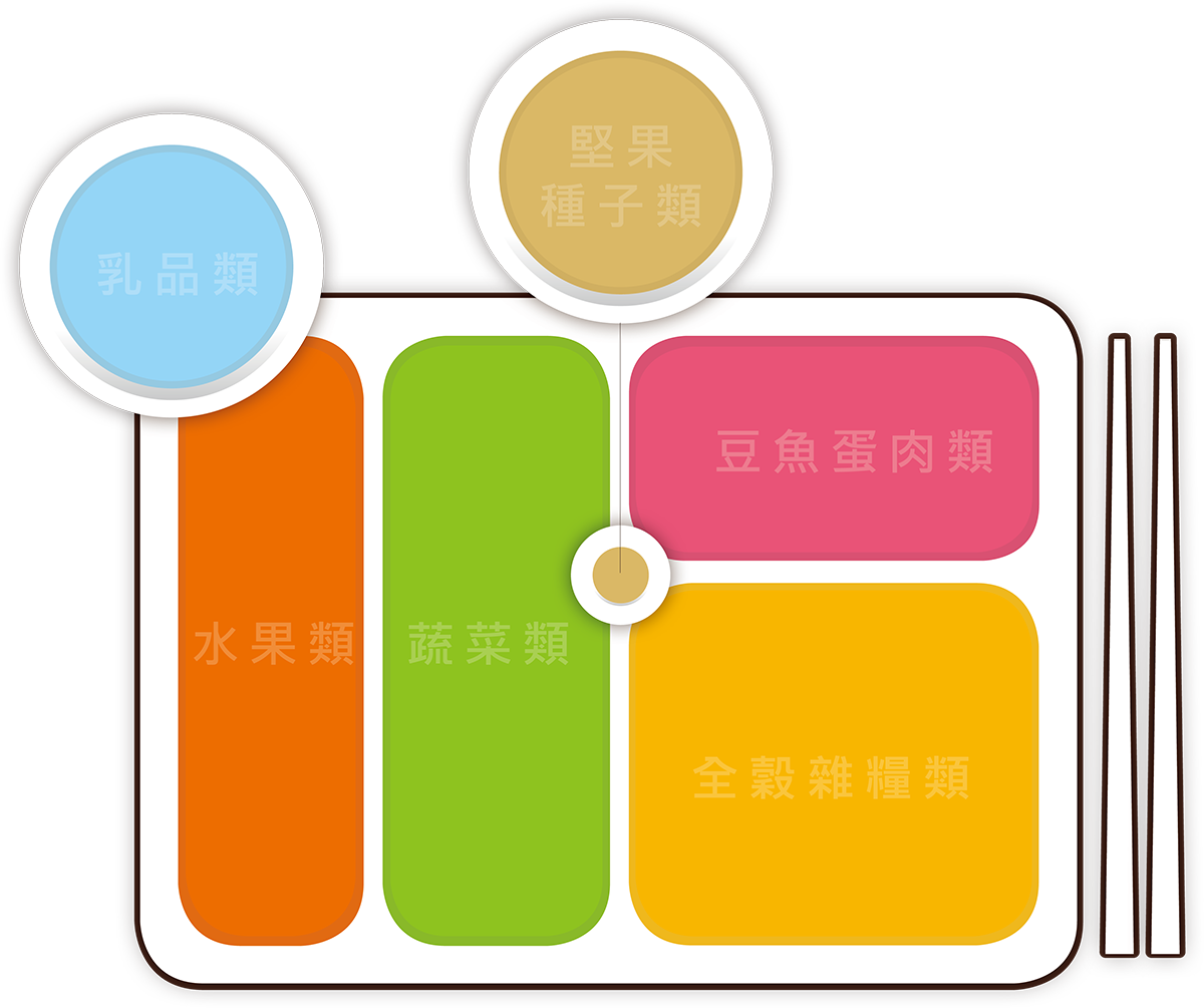 - 各色蔬菜含有不同的營養素、植化素,建議多樣化攝取。